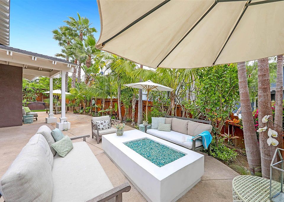 Lovely contemporary Leucadia beach home with South Pacific style. West of I-5 on cul-de-sac. Open floor plan with exquisitely updated gourmet kitchen. Mahogany and acacia tropical hardwood floors throughout. Stunning master suite with Euro Spa design. Indoor/outdoor living with LaCantina doors leading to a relaxing patio with modern fire pit, private tropical garden, and easy-maintenance turf area, above ground spa, and custom built half pipe for the kids! Welcome home! Kitchen is entertainer's dream with gorgeous Italian Santa Margarita Modern Wave Ostenda Quartz countertops, beautiful sea glass backsplash, stainless steel appliances, Wolfe range and oven, Subzero fridge, GE cafe Convection oven and microwave, GE profile dishwasher, unique custom recycled surfboard art pocket barn door. Custom solid alder wood cabinets along with modern opaque glass shelving that lights up, creating great ambiance during your cocktail and dinner parties. Walk-in natural cedar driftwood shelved pantry with extra storage space that is perfect for wine storage. Master bath includes Persian green marble countertops, porcelain flooring, waterfall shower and Restoration Hardware mirror and vanity. Plantation shutters. 10 ft ceilings. Ceiling fans. Recessed LED lighting. Home was designed by local award-winning architect Steve Adams. Outdoor shower. Custom built barn door style surf storage shed. Numerous fruit trees. Only a few blocks from Beacons Beach, Grandview Beach, and many great coffee shops and eateries. Take a stroll to the local Farmer's Market. Award-winning schools. Beach living at it's finest with your own private oasis!