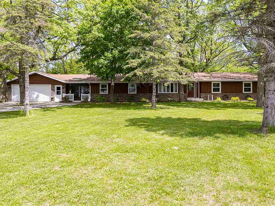 Amazing ranch on over 5 acres in town. Ability to have horses, just south of the Wiouwash State Trail. Rustic log siding features in the family room and breezeway. Huge mudroom with laundry that includes plenty of storage and counter work space. Cozy living room with brick faced fireplace and west facing windows allowing warm sunshine to fill the room with natural light. Concrete crawl space offers more storage. Barn with a tack room, 2 horse stalls, chicken coop and another stall with a ladder to the 2nd floor area. Shed, walking trails, and fenced gardens combine for a perfect farmstead.