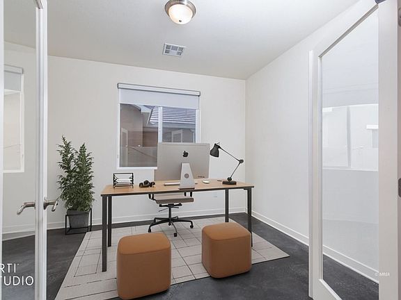 MOVE IN READY - 3 CAR GARAGE - FULLY FENCED. Built in 2022, this thoughtfully designed 1,729 sqft. home combines comfort with a functional single-level layout. Situated on a generous 0.18-acre lot the property provides a private setting with no neighbors behind or on the north side and is just steps from the community park and walking path. The residence includes two bedrooms, an office with glass-panel french doors and two bathrooms, along with a 3-car garage. The home's open-concept living area features granite kitchen countertops, a natural gas cooktop, a venting micro-hood and stainless steel appliances-all included at no additional cost. The primary suite offers a double vanity with e-stone surfaces, a tiled walk-in shower and a custom-organized walk-in closet with built-in shelving/drawers. The guest bedroom includes a built-in Murphy bed with shelving and a desk. The secondary bath offers a high-end MTI bubble massage bathtub with aromatherapy and detailed tile work. Outdoor living is equally inviting with full landscaping, privacy fencing and an extended covered patio. The oversized side yard offers space for gardening, a pool or extra entertaining space.The 3-car garage (658 sqft.) includes cabinetry for storage.