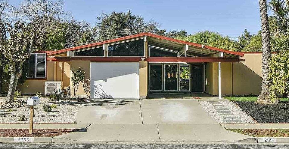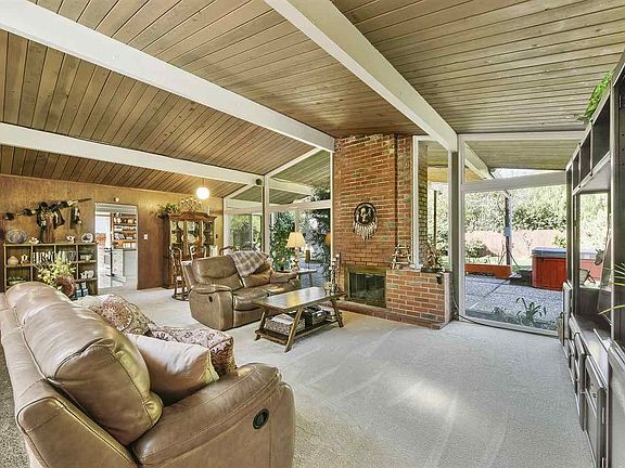 First time on the market in over 40 years for this fabulous single level, 4 bedroom, 2 bath Eichler home in coveted Parkwood Estates. Gorgeous remodeled & updated chef's kitchen with large center island, breakfast bar, granite countertops, & plenty of storage. Other features include remodeled & updated bathrooms, double pane windows throughout, radiant heating with newer HE boiler, foam roof with warranty, solar power, 2 duct-less Mitsubishi A/C units, fresh paint and new carpeting. Lots of original details too including mahogany paneling in great condition, wood burning brick fireplace in signature great room, globe lights, & unpainted ceilings. Situated on a large (almost 10,000 square feet) level lot that's ideal for entertaining & relaxing with friends & family with covered patio, hot tub, new storage shed, new lawn in back, drought tolerant landscaping in front, & programmable irrigation. Great opportunity to own a piece of mid-century modern history. Open Sat 1-4 & Sun 12-3