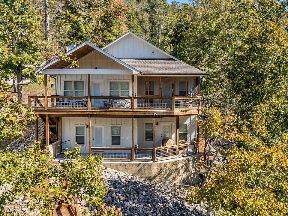 Smith Lake (Brushy Creek) A newly constructed home located in The Legends Subdivision. This community is in a great spot off the main channel in a nice deep water area. Bright and airy with an open floorpan, the home has a fireplace and shiplap walls. With both screened and open porches, you have excellent entertainment spaces. Walk out of the finished basement right on to the double slip dock!