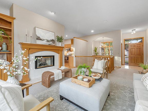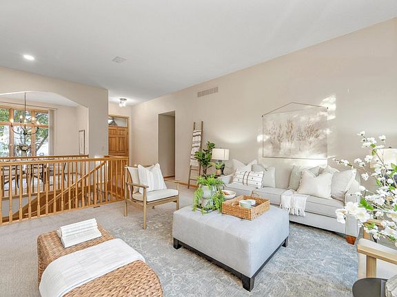 White Tail neighborhood with Andover Schools! This home has been freshly painted on the interior and inside garage. Brand new carpet in every room plus hardwood floors in kitchen and hearth room. Total of five bedrooms and three baths. There is so much light in every room! Large windows overlook an extra large sized backyard with an irrigation well for the sprinklers! Basement is a real walk out onto a patio and a lovely place for planting flowers. Wrought iron fenced back yard. If you have ever wished to live in White Tail now is your opportunity! Close to 96 for driving ease to your office! Easy to show!
