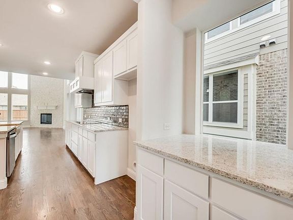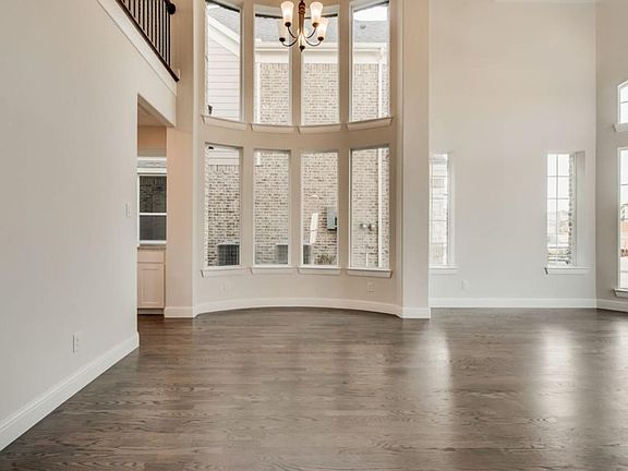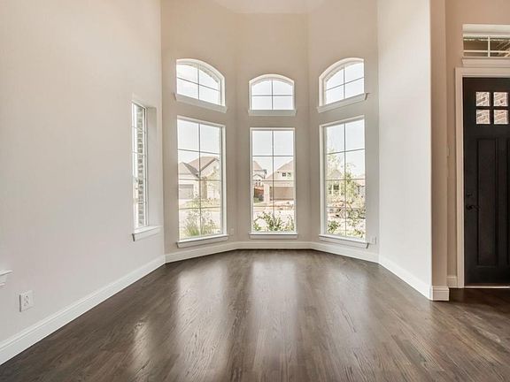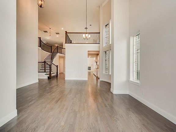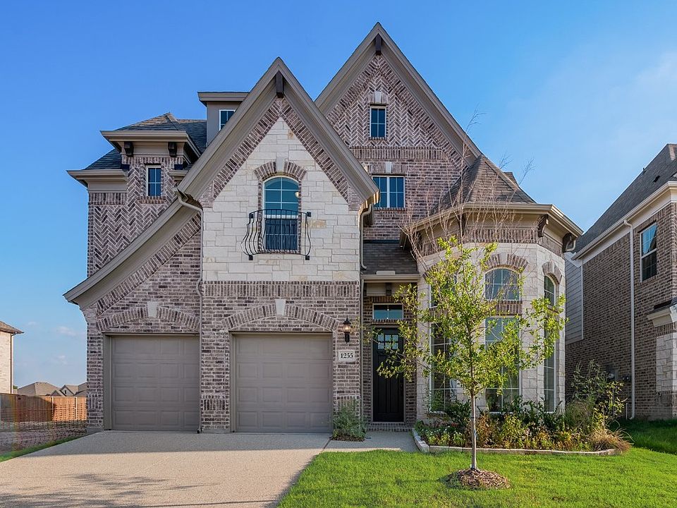 New Grand Home in Justin Crossing. MOVE IN READY. Neighborhood park & playground, dog park and trails toward Reatta Park! Texas Tudor, new construction home with stunning features such as Craftsman front door, full oak staircase w wrought iron balusters, lots of hardwood floors & 8 foot doors downstairs. Vaulted family room has drystack stone fireplace to ceiling & wet bar w granite top off Family Rm. Covered Back patio perfect for entertaining. Downstairs Guest Suite. Open concept kitchen has 2 tone Shaker cabinets, granite slab tops, Farm sink, stainless steel appliances, tile backsplash, 5 burner cooktop with pots & pans drawers below & island. Butlers Pantry. Upstairs has a Gameroom & Media Room wired for surround sound. Master Bath has Free standing tub & double vanities with rectangle sinks & deco tile shower. Energy Star certified w R38 & 16 SEER