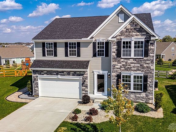 STUNNING 3 story, split 5 level entertainment oasis! Why build when you can buy like new? Meticulously maintained & updated. Coveted Providence subdivision in Maineville. 5beds, 4baths, 2-laundry rooms. Finished basement w home office, multipurpose, & storage. Upstairs loft overlooks 20ft tall great room w fireplace in open floor plan w large kitchen & island w bar top seating. Master level w ensuite bath & WIC. Largest of lots in subdivision, located at end of quiet, double culdesac. Oasis backyard for quiet retreat or entertaining, fenced yard, walkout designer deck, paver patio w pergola & sunshades, stone paver patio w custom built seat walls, octagon patio w fire pit, custom playground, raised garden bed, & gravel walking paths, community pools, walk/bike trails, & playgrounds. New roof, siding, & stone (2024) w modern colors! Keys at closing.