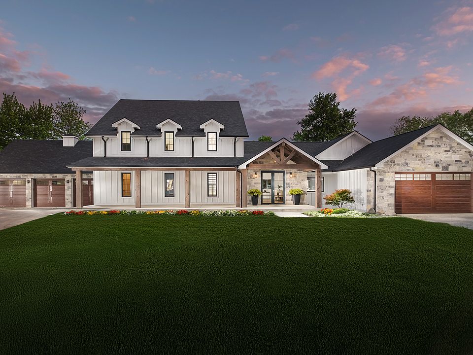 Beautifully rebuilt modern farmhouseElevated deckSought-after main-floor primary suiteDouble sinksFour spacious bedroomsVaulted hearth roomTimeless finishes