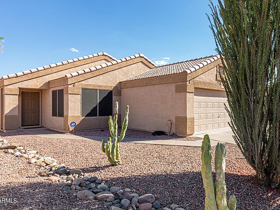 **Assumable 4.5% Loan** Looking for a new place to call home? Check out this charming single-level residence. Providing 3 beds, 2 baths, 2-car garage, and a desert landscape. Enter to find a large living room with sliding doors merging the inside and outside activities. An inviting atmosphere, enhanced by tile & wood-look flooring t/out. The fully equipped eat-in kitchen boasts a pantry, wood cabinetry, and a service window. Primary bedroom has a private bathroom with a walk-in closet. Discover the perfectly sized backyard, offering a storage shed and a covered patio to relax or enjoy BBQ! Fantastic views of the Superstition Mountains to the East! Conveniently located close to schools, parks, dining, shopping, and freeways. Move-in ready! Don't miss it!