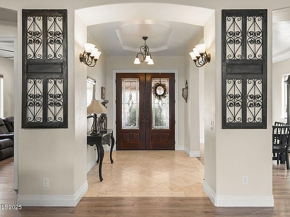 Stunning custom home situated on almost 5 acres in the highly sought-after Steamboat Valley with unobstructed mountain views. This beautifully maintained home features four bedrooms, 3.5 bathrooms, and over 4,000 sq ft of luxury living space. The spacious and bright great room boasts soaring vaulted ceilings with wood beams and a floor-to-ceiling stone fireplace, featuring a wood-beam mantle, which makes it a beautiful focal point. The upgraded kitchen is a chef's dream, featuring high-end, professional-grade appliances, an oversized island, and an abundance of soft-close cabinets and granite countertops, along with two large pantries. Enjoy the extra space in the luxurious main suite, which boasts a large walk-in closet. The primary bathroom boasts a spa-like ambiance, complete with a spacious garden tub, walk-in shower, and a luxurious bidet toilet. There are an additional three bedrooms and a cozy den/office space, providing ample room for all your needs. Enjoy every inch of the almost five acres with lush landscaping, a large 42X64 shop, a 36x36 horse barn, and tons of room for all of your outdoor toys and vehicles, including the covered portico. This property offers ample space for all your beloved animals, including several designated dog areas that meet Washoe County's approval as kennel facilities. This location provides a tranquil escape, yet is just a short drive to all the conveniences and amenities desired, including a quick trip to majestic Lake Tahoe. Don't miss your chance to own this remarkable property in a prime location!