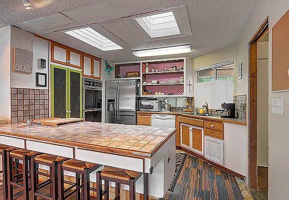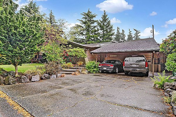 Lovely and spacious Mid Century Bungalow on picturesque street, tucked away yet close to it all. Sun filled large living spaces open to a grand patio; perfect for entertaining. Great 12 X 17 studio ideal for hobbies, artists, storage etc... Home features open kitchen, three bedrooms, 2 1/2 baths, utility room, wood fireplace and extra storage in basement. Bring your imagination, this home is ready for a few cosmetic updates, sold "as-is".
