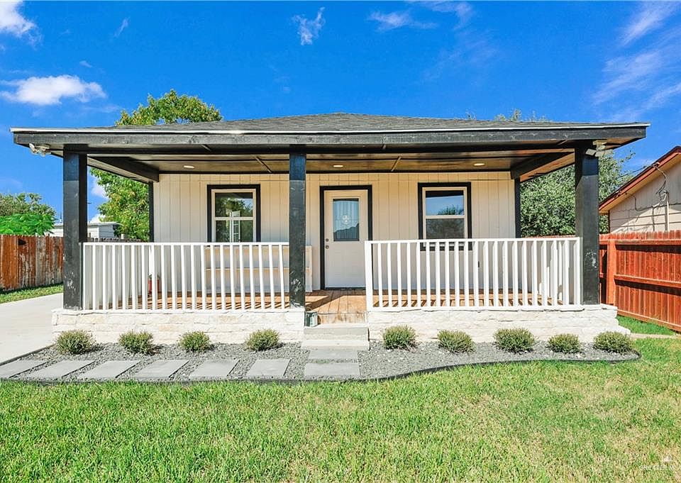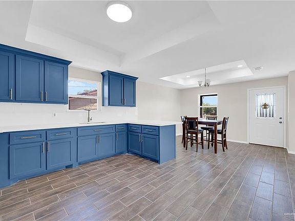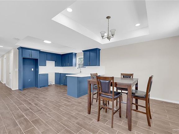 Charming Modern Farmhouse in La Feria! Welcome home to 12553 Arroyo Street, where comfort meets style! This beautifully remodeled home offers a modern farmhouse design with a cozy front porch perfect for relaxing evenings. Step inside to an open-concept layout featuring elegant wood-look tile floors, recessed lighting, and tray ceilings that make the living space bright and inviting. The kitchen is a showstopper—featuring bold blue custom cabinetry, sleek white quartz countertops, and a functional island perfect for entertaining or family meals. Enjoy cooking with plenty of counter space and modern finishes that make this home feel brand new! The spacious layout flows seamlessly from the kitchen to the dining and living areas, creating the ideal setup for gatherings or quiet nights in. Outside, the covered porch gives this home excellent curb appeal! Located in a peaceful neighborhood with easy access to major roads, schools, and shopping. Call today!