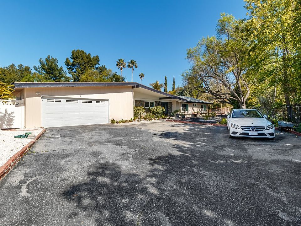 This charming and secluded single story residence is now available for rent in Granada Hills. Boasting 4 bedrooms, 3 bathrooms, and 2,279 square feet of living space, it offers a serene retreat with modern amenities. Inside, the home features recessed lighting, hardwood floors, and captivating views of the nearby golf course. Upon entry, the front door welcomes you into a spacious family room that seamlessly flows into the kitchen and dining area, creating an open and inviting atmosphere. The interior is bathed in natural light, accentuated by beamed ceilings, lending an airy feel to the space. The kitchen is generously sized and equipped with marble countertops, laminate finishes, and ample storage, making it both functional and stylish. Appliances include a refrigerator, gas oven and stove, microwave, and dishwasher, catering to all culinary needs. The primary bedroom is a luxurious retreat, offering direct access to the backyard, a walk-in closet, and an en-suite bathroom complete with a glass shower and dual sinks. The additional bedrooms are equally spacious and bright, with one currently serving as a convenient office space. Outside, the landscaped backyard is a haven of tranquility, featuring an open patio and a refreshing pool, perfect for relaxation and entertaining. A charming swing set and seating area by the pool provide additional opportunities for outdoor enjoyment. In summary, this home offers a perfect blend of comfort, elegance, and outdoor allure, making it an ideal sanctuary for those seeking a peaceful retreat in Granada Hills. Great location. Located in the Knollwood Country Club Estates, with highly rated schools, this home is secluded, offering privacy from the main street.
