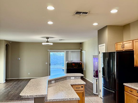 Welcome to your private beautifully landscaped large corner lot with no neighbors to the rear. This meticulously maintained home includes 3 bedrooms, 2 baths, and 2 car garage. Vaulted grand ceilings, great north/south exposure with covered patio with energy efficient sun shades, lush green grass, blinds, maple cabinets with bronze handles, eat in kitchen, tile, kitchen island, reverse osmosis, black kitchen appliances, custom dimmable ceiling fans, soft water system for home and at exterior hose bib for washing cars, garage cabinets, large master with separate exit to patio, double sinks, separate tub/shower in master, and so much more!! This home is a must see.