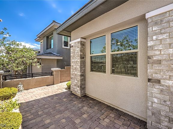 Discover elevated living in this sought after Summerlin community, perfectly positioned against a private walking trail with sweeping mountain and city views. A charming front patio welcomes you into a refined interior where tile floors flow across the main level and luxury vinyl plank defines the upstairs. The gourmet kitchen impresses with extended cabinetry, tile backsplash, a striking pendant-lit island, and double ovens. A downstairs guest suite with full bath offers functionality, while the upper level reveals a versatile loft, laundry room, and a serene primary suite with expansive views. Smart home technology enhances daily living, complemented by a brand-new water conditioning system. Outdoors, multiple seating areas create the perfect backdrop for morning coffee or sunset entertaining, all within minutes of parks, trails, and Doral Academy. Crafted with detail and designed for lifestyle, this residence stands as a distinctive offering in one of Summerlin’s premier settings.