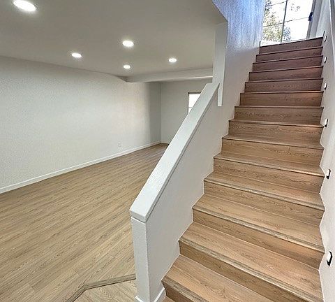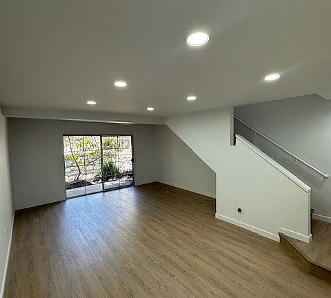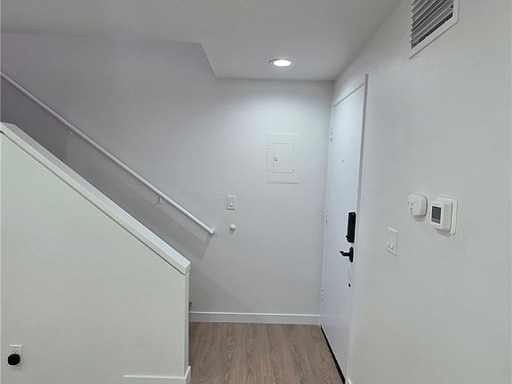 PRICE IMPROVEMENT!! Welcome to 12555 Euclid St #2, Garden Grove, CA 92804 — Located in the heart of Garden Grove just two blocks from Down-Town Historic Main St, an exquisitely remodeled two-story loft-style residence nestled within the highly sought-after Lake Grove community. This glamorous 1-bedroom, 1-bath home showcases dramatic cathedral ceilings, expansive open living spaces, and a private patio overlooking a serene creek accented by cascading waterfalls. The gourmet kitchen is appointed with premium upgrades, including a Brand-New Samsung electric stove & oven, a Smart Samsung Microwave, Frigidaire Dishwasher, designer quartz countertops with a waterfall edge sink, and contemporary custom cabinetry with sleek gold hardware. Every detail has been thoughtfully curated, from the new wide-plank laminate flooring to recessed LED lighting and modernized electrical throughout. The bathroom features a chic vanity paired with a state-of-the-art OVE smart toilet, complete with heated seating, night illumination, and remote-control functionality.