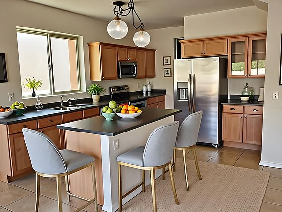 Welcome home to this spacious 5BD/3BA retreat perfectly set on a peaceful greenbelt with no two-story homes behind. Designed for comfortable living, this home features a downstairs bedroom and bath ideal for guests or extended family, a front flex room for a home office, and a formal dining area for special gatherings. The open kitchen flows into the family room and backyard, perfect for entertaining. The backyard is a true diamond in the rough—private, serene, and full of potential. Upstairs, a large loft adds even more versatility. With a little TLC, this home will shine. Homes with this much space and flexibility rarely come around under $500K! ( Picutes are virtually staged to give you an idea on what the home could look like, it is vacant now)