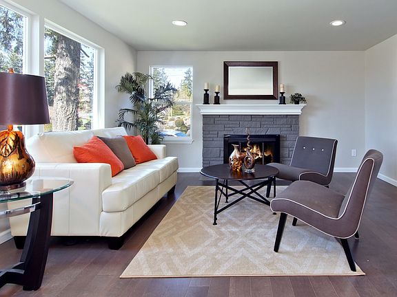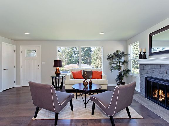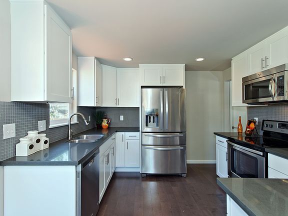 Remarkable remodel in desirable Broadview situated on a huge corner lot. All new windows, floors, fixtures and trim. New engineered hardwood floors throughout main floor. All new modern kitchen has quartz countertops, white shaker cabinets, tile backsplash & ss appliances. Large deck off living area. Master bed has 3/4 private bath with designer tile surround and floors. Lower level has a family room with wood fireplace, 2 more bedrooms and a new full bath. Fully fenced level lot, 1 car garage.