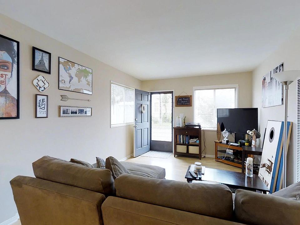 Spacious and bright lower level apartment in a triplex building. Includes one car garage storage, shared grassy yard and plenty of street parking. Owner pays trash, gardener and water