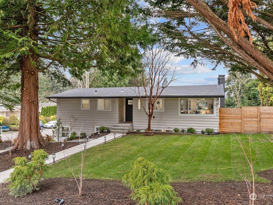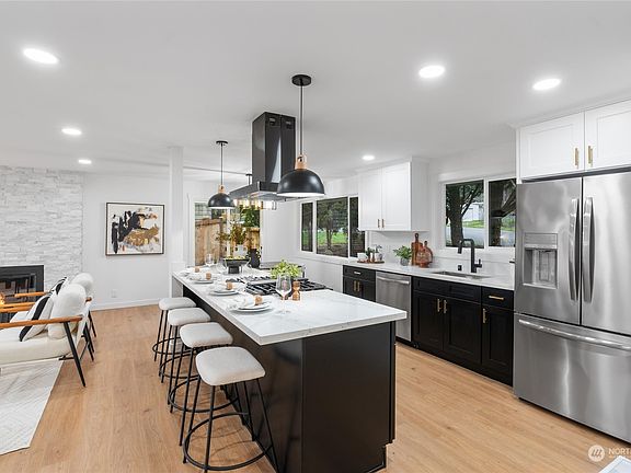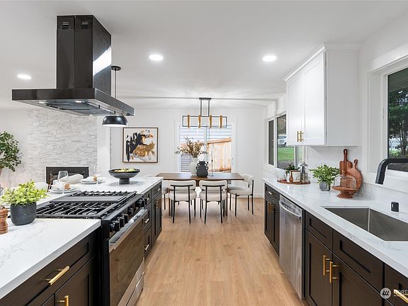 Welcome home! This mid century modern home has been fully renovated, blending modern comfort & classic charm together! Home occupies entire block from Coronado St to Birch St while maintaining privacy with a fully fenced yard! Primary bedroom is located on the main floor, with primary bath and walk in closet as well as separate enterance to a full trex composite deck and iron rails! Deck offers views of the Olympic Mountains and Puget Sound! Custom built in cabinets and brand new fireplace in main living space! Four other bedrooms accompany the home along with a separate office space and full size washer and dryer in utility room! Lots of natural lighting throughout home, and extra parking areas in driveway! Close to downtown Edmonds!