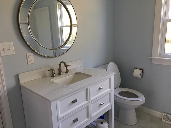 Updated with all new kitchen and bath. New roof, electrical and paint. Large house with 4 bedrooms, 1 bath, kitchen, dining room, living room and 2 enclosed porches. Detached two car garage with workshop storage and small barn on 1 acre.