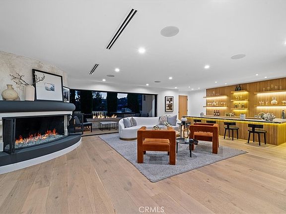 Exquisitely renovated estate situated within a premier Beverly Hills cul-de-sac location displaying unmatched design and quality. Offering impeccable privacy and panoramic views throughout this home is the epitomizes luxury at its finest. As you enter you are greeted by a grand formal entry with soaring high ceilings and skylight providing tons of natural light. The home's spacious living room is fully equipped with a bar area perfect for entertaining, cozy fireplace, and floor to ceiling glass pocket doors leading to the picturesque yard. Chef's kitchen equipped with top notch appliances, dual sinks, and custom oak cabinetry. Family room perfectly curated to provide a warm atmosphere with a marble fireplace and glass wine display. Impressive primary bedroom with vaulted ceilings clad with natural oak planks, elevator access from main level and multiple balconies showcasing the breathtaking views. Oasis like yard is an entertainers paradise featuring sparkling pool/spa with automatic pool cover, BBQ center, fire pit area and a generous amount of grass area. Third level provides gym area and private home theater perfect for movie nights. Additional amenities include security cameras, surround sound system, elevator and smart system. Gated and set back from the street while providing ample parking for guests or car enthusiasts. Just minutes from Beverly Hills best fine dining, shopping and best the city has to offer!