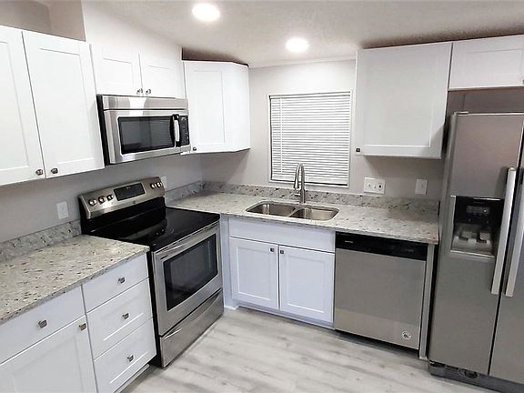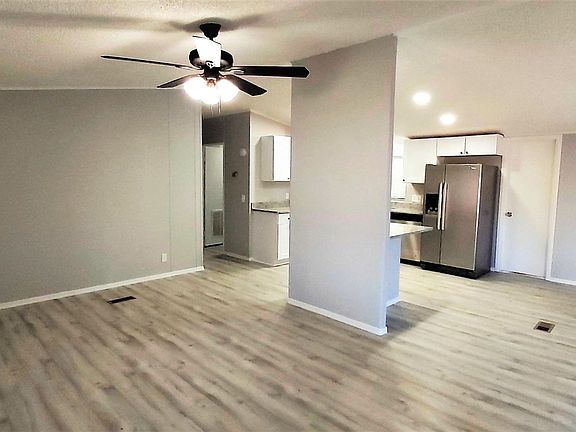 Complete remodeled manufactured home, no HOA on a quiet & large pie shaped corner lot. 3 bedroom, 2 bath floor plan is spacious, bright and functional. Vaulted ceilings, freshly painted inside and out with light grey tones, new laminated flooring & new carpet on bedrooms. Open Kitchen with new white cabinetry, granite counter tops and all stainless steel appliances. Updated LED lighting, new electric and plumbing fixtures, remodeled bathrooms include new vanities, lighting, toilets and resurfaced showers. New ceiling fans, new baseboards & brand new roof shingles. Newer AC, new water heater. Window-lined Arizona a room is a plus. Lots of space for parking ,5 sheds and extended covered carport . this is truly a move in ready unit !!