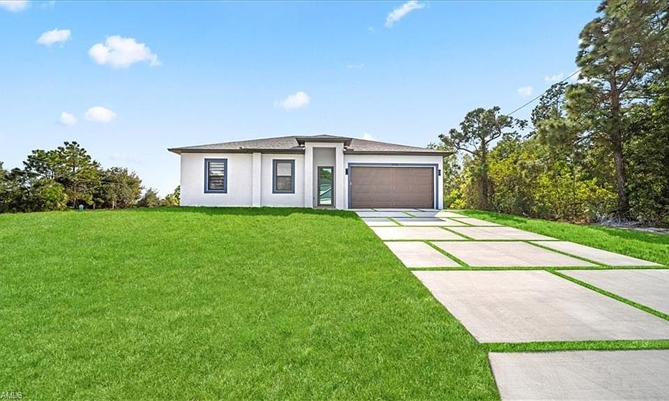 Welcome to modern new construction of single family this 3-bedroom, 2-bathroom home located in a prime area of Lehigh Acres, near SR-82. It boasts 1,270 square feet of living space and 1,699 square feet of total built-in area. This property offers an inviting layout with three bedrooms and two bathrooms, spacious living and dining areas, and a two-car garage for added convenience. Enjoy Florida living with a large backyard, perfect for gardening, pets, or future exterior improvements.