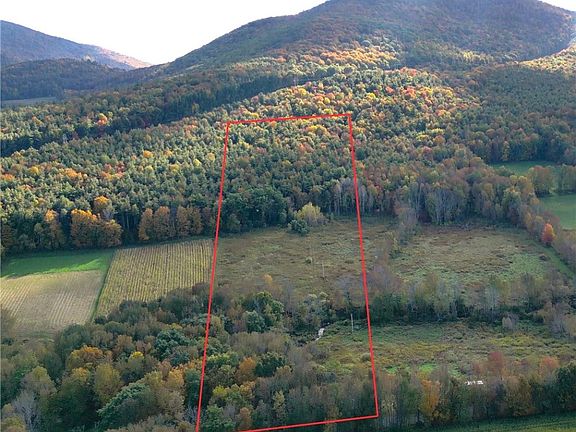 This land parcel offers a diverse set of features, including; two open meadow areas, the robust and winding Jump Brook running through the lot, established utility poles and lines, a grassy drive leading to a concrete pad and shed, a section of upland woods, and pristine views of the surrounding hills. With road frontage on a town maintained road, proximity to vibrant towns such as Stamford and Roxbury, and a short drive to multiple areas of City and State public access land, as well as popular ski centers, the location is ideal for usage as a weekend or seasonal getaway, but could also make for an outstanding permanent home site with a little imagination and further site development. An established grassy entry leads into a meadow area, and then down towards the coursing Jump Brook. A culvert and driveway that used to service a cabin in the upper meadow has been washed out, but the infrastructure remains, including the grass/dirt driveway, concrete pad, storage shed, and electric service pole. This one has a ton of potential to develop in numerous ways.
