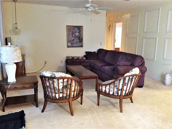 Now taking back-up offers! Lovely villa only 2.2 miles from Sumter Landing. Kitchen and baths have beautiful granite counters. There is a Murphy Bed in the second bedroom that stays with the house. Master bedroom has large walk-in closet. Electronic retractable awning on side yard with a remote control really makes a difference for outdoor grilling. The gas Golf cart is included with this home but not warranted. Some furniture is optional possible turnkey. Great Cabot Cove model with inside laundry room just off the kitchen. AC was installed in 2015. Don't miss this opportunity to purchase this great home, priced to sell!