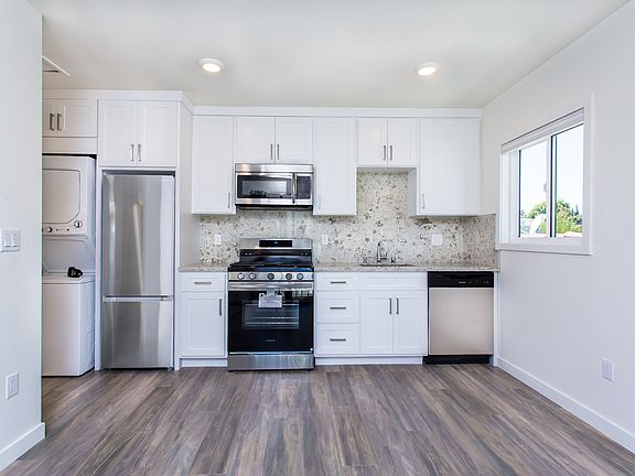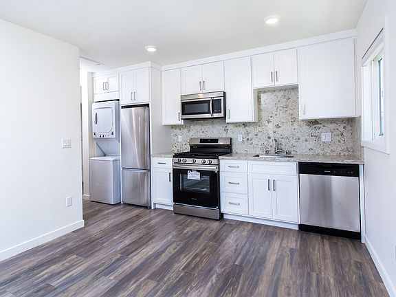 Chef's kitchen with Quartz counters and backsplashes, stainless steel appliances, gas stoves, beautiful cabinetry . Spacious bedroom with a customized closet and some with barn doors. Luxe bathroom featuring floor to ceiling tiles in the shower , an oversized shower head, and frameless shower glass doors .In home washer and dryer, ductless air and heat and customized window treatments. Each unit comes with parking.