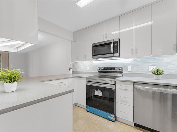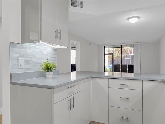 This beautifully remodeled first-floor 2 bedroom/ 2 bathroom condo is move-in ready and checks all the boxes! All ages, pets ok, no credit score, gated community, just minutes from the beach, major highways, and shopping. Experience the attention to detail throughout. The home features a brand-new, custom-designed kitchen, equipped with high-end stainless -steel appliances, perfect for both everyday living and entertaining. The air conditioning system, including all ducts, has been completely reinstalled to ensure optimal cooling and airflow year-round. Primary bedroom has an extra closet. You'll also appreciate the new flooring, fresh paint throughout, and a modern, energy-efficient tankless water heater. sewage, trash, water, pool, gym, jacuzzi, and sauna is included in the rent.