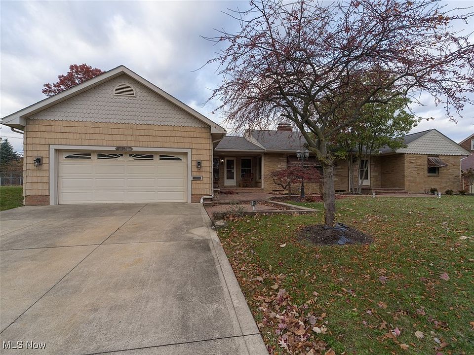 Stunning ranch with shingle siding, stone and brick walkways, covered patios, awnings and flowering trees! You will fall in love the minute you enter! Stunning family room with wormy chestnut walls, hardwood floors and a stone fireplace! Beautiful whitewashed Schrock kitchen cabinetry with Corian countertops, under cabinet lighting, tiled backsplash and pass throughs to the family room and living room with custom stained-glass windows! Huge living room with new carpeting, massive picture window and a stone fireplace. Curved doorways from the living room open to the formal dining room with wormy chestnut walls, a coffered wood ceiling, built-in China cabinet and a massive picture window overlooking the private backyard. Both bedrooms offer wood floors, wood walls, ceiling fans and double closets. Beautifully remodeled bathroom with LVT floors, new cabinetry, new fixtures, solid surface countertops, with double sinks and a shower with shower door. Neatly painted lower level with laundry area, room for a rec room and a separate room that could be an office or possibly a third bedroom. Surprising oversized two car garage with a tandem two car garage behind it. The tandem two car garage would be an excellent workshop, storage area or possibly a future master suite! Furnace and AC were approximately 2022 and the roof is 10 years old with a 50 year shingle! This home is exceptional. You truly have not been in anything like it! If you've been looking for something with character and Jackson schools… This is it!