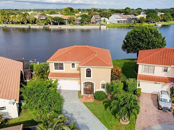 INCREDIBLE LAKE VIEWS WITH 100FT OF DIRECT CULDESAC WATERFRONT! NO CARPET! UPGRADED 3 BEDROOMS 2.5 BATH & 2 CAR GARAGE WITH HUGE PATIO & A VERY LONG DRIVEWAY ON AN OVERSIZED LOT. LIGHT, BRIGHT & AIRY WITH 3 SLIDING DOORS & ADDITIONAL WINDOWS TO APPRECIATE THE EXCEPTIONAL VIEW. TILE DOWNSTAIRS AND LAMINATE STAIRS, LOFT AND BEDROOMS, PLANTATION SHUTTERS, GOURMET KITCHEN INCLUDES UPGRADED WOOD CABINETS, GRANITE & STAINLESS APPLIANCES. SEPERATE LAUNDRY ROOM, UNDER STAIR STORAGE, PRIMARY BATH HAS GRANITE & LARGE TILE SHOWER & LARGE WALK IN CLOSET. WALK TO THE COMMUNITY POOL, SPA & FISHING PIER. LOCATED IN THE HEART OF WELLINGTON. A-RATED SCHOOLS. COME LIVE THE DREAM. ONCE YOU SEE THIS WATER VIEW YOU WON'T WANT TO LEAVE!