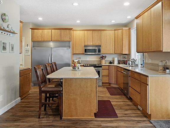 Looking for more space? Discover this expansive 5-bedroom, 2.5-bathroom home with 2,686 square feet of living space. The main floor features newer laminate hardwood floors and includes formal living and dining rooms. The updated kitchen is equipped with stainless steel appliances, granite countertops, maple cabinets, an island, and a 64-inch commercial-grade refrigerator. The family room offers a cozy gas fireplace and a slider that opens to a huge covered patio, perfect for enjoying the lush backyard and warm summer nights. A main floor bedroom can double as a home office. Upstairs, the primary suite boasts a luxurious 5-piece bath and a walk-in closet. The laundry room, complete with a washer and dryer, adds convenience. One of the upstairs bedrooms is exceptionally large and can serve as a versatile bonus room. Additional highlights include a newer roof (only 3 years old), air conditioning, central vacuum system, a garden shed, and access to neighborhood parks. This home has so much to offer!