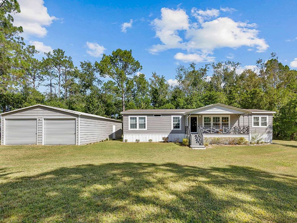 Tucked away on a beautiful 6+ acre parcel, this property offers the perfect mix of cleared land and mature hardwoods. Set on a paved county road , the property feels like your own private retreat—but still offers easy access to town, rivers, and springs. Whether you’re dreaming of a hobby farm, weekend getaway, or full-time homestead, this land has the space and freedom to make it happen. Step inside the well-kept 3BR/2BA 1,800 sq. ft. home complete with quality-built front and back porches—ideal for rocking chairs, morning coffee, or watching deer stroll through the trees. The spacious master suite features a huge walk-in closet and a bathroom with double vanities and a walk-in shower. Bonus features include: Detached 2-car garage with concrete slab and workshop area, additional metal barn perfect for storing tools, equipment, or outdoor toys, partially cleared acreage that’s ready for livestock, gardening, or expansion, huge chicken coop, scattered shade trees throughout the property creating a peaceful, park-like setting. This is a very well-maintained home and property—clean, cared for, and ready for its next chapter. Just minutes from the Santa Fe and Ichetucknee Rivers, boat ramps, and freshwater springs. Escape the hustle and enjoy the rural lifestyle North Florida is known for.