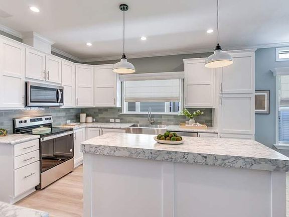 This stunning 2-bedroom, 2-bathroom home offers 1,280 sq ft of thoughtfully designed living space, ideal for comfort and style. Step onto the covered front porch and enter into an open-concept floor plan that seamlessly connects the living, dining, and kitchen areas. The home is adorned with luxury vinyl plank flooring, tray ceilings, and crown molding, exuding an elegant, modern charm. Built to the highest Wind Zone 3 (WZ3) standards, it ensures durability and security.The kitchen boasts hardwood shaker cabinetry, a beautiful ceramic tile backsplash, and high-definition countertops that complement the farmhouse-style kitchen sink. A large kitchen island offers ample storage and workspace, perfect for both everyday meals and entertaining. Stainless steel electric appliances complete this chef's dream.The master bathroom features a walk-in ceramic tile shower, while both bathrooms include framed mirrors and satin & brushed nickel hardware for a refined touch. Designer pendant lights add a touch of sophistication throughout the home, making this space as functional as it is stylish.Discover Osprey Bay-a brand new, vibrant 55+ community by the beach in Fort Myers.Filled with charming cottages, best-in-class amenities, and active programming, here mornings are spentat the resort-style pool or outdoor pavilion and afternoons by the water. Osprey Bay will offer incredibleaccess to the best of Fort Myers. Perched nearby restaurants, retail, beaches, and water activities, dayscan easily be dialed up or down to your liking. A once in a lifetime opportunity to live in a coveted beachtown community.*Model home starting price subject to change*