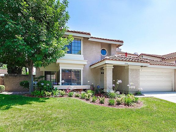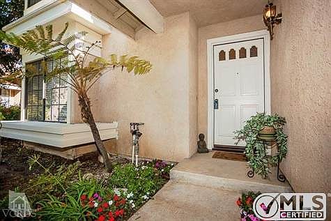 HAPPY and BRIGHT home with lots of natural light. SPACIOUS and OPEN! Entertainer's home in the community of Mountain Meadow in South Moorpark close to parks, shopping and schools. Double door entry opens up to spacious carpeted living room with brick fireplace overlooking formal dining room. Perfect for all your celebrations. Wet bar by the kitchen with access to both formal dining and family room. Kitchen has tile floors, lots of counter and cabinet space, pantry, double oven, and stainless steel dishwasher, stove top and refrigerator. Just off of the kitchen is a breakfast nook that opens into the family room with wood-like floors, a second fireplace and surround sound. Also located on first floor are a half bath with separate entrance, laundry room, and two car garage with built in storage. All 4 bedrooms located on second floor. LARGE MASTER suite with sitting area, a walk-in closet, ensuite bathroom with dual sinks, oversized tub, separate shower, and an enclosed toilet room for added privacy. Other 3 bedrooms are large and roomy. Oversized backyard with grass and space for your patio furniture. HOA maintains front yard and offers community pool. UPGRADES done: smooth ceilings and recessed lighting throughout, sorround sound in family room, new shower doors, new white closet doors in two of bedrooms, and master closet was closed off to make walk-in. Pride of ownership with a PRICE that allows you to put your own touch. WELCOME HOME!