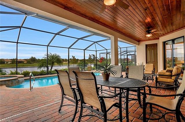 Looking for your perfect place in the sun? This 2+den, 2.5 bath (includes pool-side cabana bath), Victoria edition home is ready to be enjoyed. A golfer's dream come true. This home transfers with the *FULL GOLF MEMBERSHIP* to 36 holes of championship golf right on the grounds at The TwinEagles Club. From your lanai, while relaxing poolside, take in enjoyable views of the 5th hole of the Eagle Course. This is a beautifully built home featuring impact windows and doors and all that you would expect from a 2014 constructed home. Truly capable of being appreciated as your own in a quick order.