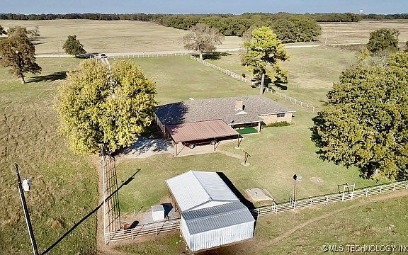 View this 10 (mol) beautiful, fenced acres complemented by a spacious residence in an ideal location. Prospective buyers are invited to view this meticulously maintained property, distinguished by scattered mature trees, rendering it an ideal haven for equine or cattle enthusiasts. The expansive kitchen area is a culinary delight, boasting ample pantry space and numerous cabinets, in addition a comfortable dining and commons area. A generously proportioned formal dining area is conveniently situated in close proximity to the kitchen. The expansive living area, adorned with wood beans and a wood burning fireplace promises to be a warm and inviting space. The main suite offers ample closet space, and the spacious en-suite bath area has a soaker tub. Recent upgrades include a new Class 4 Owens Corning roof and new chimney. The property benefits from public water for household needs and a water well catering to outdoor requirements. Additional features include a gated entry, storm shelter, carport, storage building and a lovely patio perfect for enjoying the picturesque countryside. The property's proximity to WinStar Casino and the Texas boarder adds to its allure. Do not miss out on this lovely property. Priced to sell.