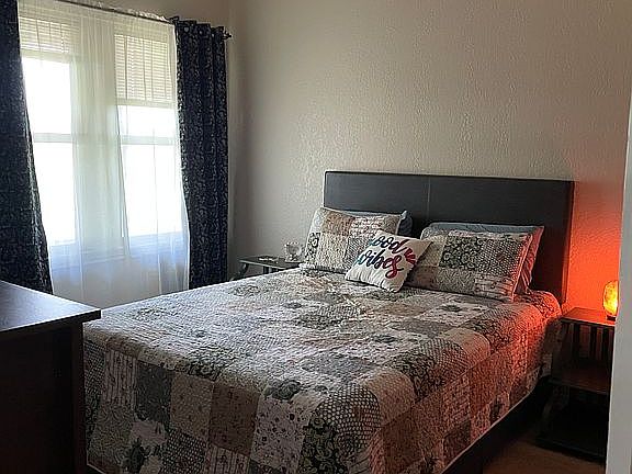 all the wooden shutters, and the large open kitchen. as well as the French doors in the master bedroom.