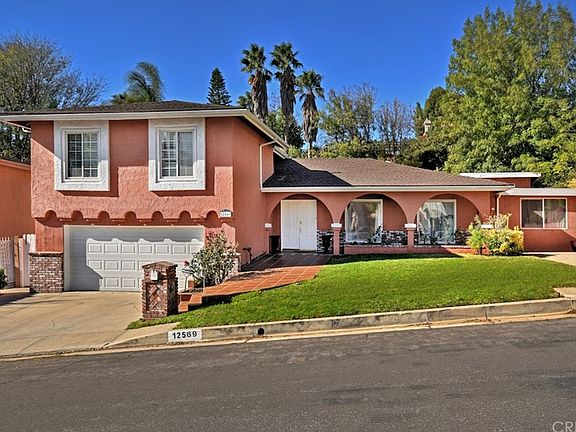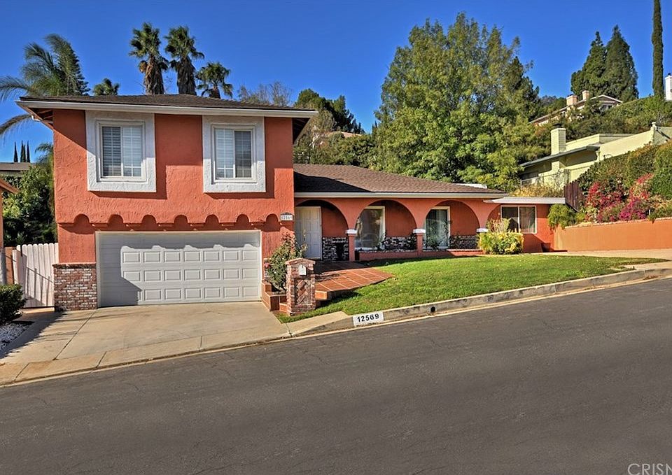Gorgeous Spanish style home in quiet and safe Granada Hills! This house truly has it all. The main level of the house features the living room, dining room, game area, and kitchen; Kitchen is large with tile counter-tops, newer appliances, and huge window with a view of the backyard. One level down, you will find an absolutely enormous family room with bathroom, fireplace, wet-bar area, and easy access to garage. On the top floor of the house, you will find four large bedrooms, which includes the master with en-suite bathroom & two walk-in closets! House also features crown molding, recessed lighting, ceiling fans, and two covered patios (one outside the family room and the other through the kitchen). Enormous backyard with room for all activities: Grass area for future pool if you'd like to add. Covered patio as well as an open patio area for barbecues and various sports and lounging. There are too many details to list including guest quarters! You just have to see this house!