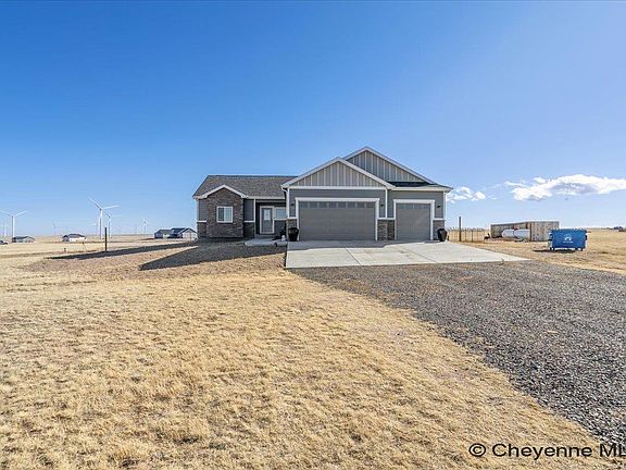 Escape to the peace and quiet of rural living in this beautiful, like new home and watch the antelope play on the 6.92 acres of wide-open spaces. Built in 2023, this 3 bedroom 2 bath home offers an open concept layout, gas fireplace and spacious kitchen. The unfinished basement offers endless possibilities, radon system is installed and the septic is sized for 5 bedrooms. Topped off with a 3-car garage, high impact shingled roof and Central Air-Conditioning. Enjoy the best of rural serenity with modern conveniences and just 15 minutes from Cheyenne.