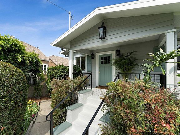 A darling cottage home residing in the desirable city of Silverlake! A luscious front yard with a long walkway leads up to the large front porch newer. Inside, gorgeous herringbone pattern hardwood floors and fresh coats of paint emphasizes this luminous 1,602-sqft home. The adjoining living room and dining room are stylized with beamed ceilings as large windows floods the space with natural sunlight. Off the living room space, find a beautiful office fitted with accordion French doors and French windows plus built-in bookcases on either side of the doorway. Across from the dining area is a spacious bedroom complete with built-in closet storage. The gorgeous primary bedroom provides the comforts of a convenient laundry room with plenty of built-in storage, side yard access, and an en-suite bathroom styled with honeycomb tile floors and a glass walk-in shower. Journey into the crisp kitchen where Carrera Marble countertops adorn neat white cabinetry while complimenting the subway tile backsplash and checkered floors. Secondary bath with gorgeous Malibu tile. From the kitchen is the outdoor deck which leads down a set of stairs to ground level storage and access to the side yard. The property includes a detached 1-car garage and a spacious driveway with room for an additional parking space. Located mere minutes away from Sunset Blvd and is conveniently situated nearby plenty local establishments, restaurants, shops, markets, & so much more! A real gem in a prime neighborhood!