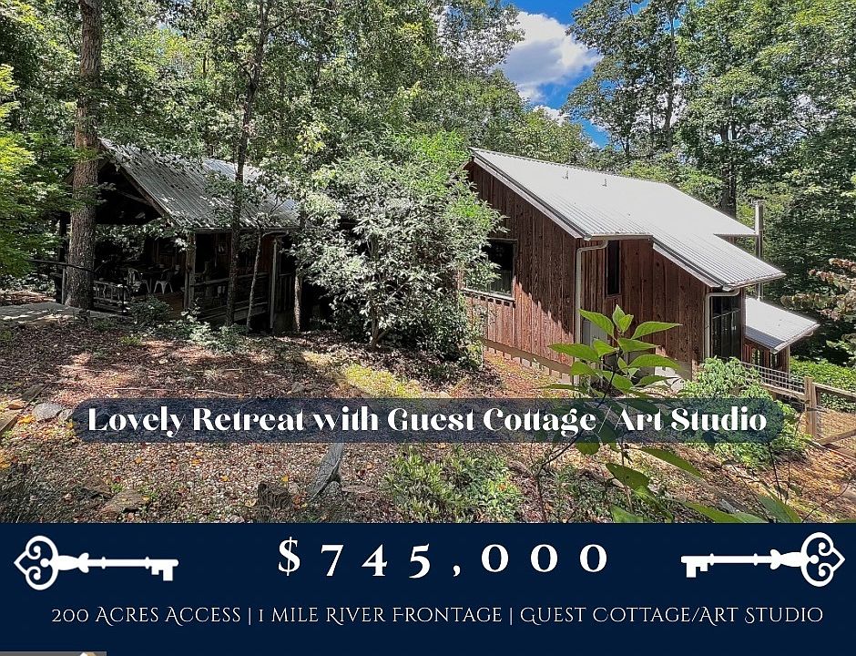 A Creative Sanctuary with Environmental Stewardship at its Heart Imagine a place where the whispers of the woods and the songs of the river become your daily companions- a place where creative opportunities and nature converge. Located in the breathtaking foothills of Northeast Georgia in the Broad River Basin, this unique property offers a rare opportunity for those seeking an inspiring retreat- a magical place to create, unwind and reconnect. Less than 30 minutes to Lake Hartwell, 45 minutes from Athens and two hours from Atlanta, this secluded but easily accessible property is a nature lover's paradise. The Property: An Endless Source of Inspiration: 10-acre lot w/ 1,841 sq ft, 2 BD, 2 BA custom built home, approx. 1-acre fenced w/ additional custom-built studio plus additional building site available. 1/6th ownership in Peyton Ferry Farms includes 200 acres of shared land featuring 1 mile of Broad River frontage, expansive sand bar, many fields of native grasses, upland and lowland wooded areas, numerous trails, creeks and vistas. A natural haven perfect for all forms of creative expression, gardening, hiking, canoeing, birding, hunting, fishing, swimming & living close to the land. The Home: A Masterpiece of Craftsmanship and Comfort: What once was a 20x20' cabin built in the early 1990's, transformed in 2015 to a welcoming "kitchen house" that became integrated into a stunning two-story home designed by Athens' architect, Van Strickland and master builder, Scottie Edwards. The kitchen house boasts a large covered eating porch, an open-concept kitchen, granite countertops, customer cabinetry, high-end appliances including an induction range, cedar wainscoting, vaulted ceilings w/ exposed beams, large double-paned windows and salvaged stained glass accent windows, multiple seating options, soapstone wood stove w/ a local granite hearth and separate heat pump. A thoughtfully designed breezeway floats from the kitchen house to the rest of the living space and includes an ample pantry, shelved utility closet, large coat closet, bright, airy seating and napping nook w/ deep drawers and a hidden sliding table, French doors leading to a large deck and covered porch. Further down the breezeway is a stunning primary bathroom, ample laundry closet w/ controls to a dual zone-heat pump and a jaw-droppingly beautiful master bedroom w/ walk-in closet, walls of windows and a glass slider door to a covered porch w/ incredible views. The downstairs portion of the house is equal to the beauty and craftsmanship of the first floor w/ a large multifunctional room suitable as a second bedroom, office, gym, den or all of the above, an additional bathroom, wood stove w/ local granite surround and hearth, deep walk-in closet, alcove suited for extra fridge/freezer. Lovingly handcrafted details throughout, including pine walls and ceilings (no sheetrock), 45+ large windows and glass doors gives every room abundant natural light and incredible views, covered porches and decks on multiple levels, perfect for entertaining or quiet introspection. Nature at Your Doorstep: Approximately 1 acre fenced in 4' and 6' wire and wood fencing w/ multiple gates including a large fenced area perfect for a playing field and dog park. Large, irrigated organic garden including an established asparagus bed, herbs, blueberries, thornless blackberries, figs. Rock-lined and irrigated perennial beds including native flowers, shrubs and trees. A spring originating at the base of the property that meanders to the Broad River. Numerous trails through approximately 9 acres of woods weaving along old stacked rock terraces that circle the property. Expansive views, secluded nooks offer countless opportunities for inspiration and rejuvenation. At Peyton Ferry Farm, nature is your canvas and your muse. The connection between the land and the people who live on it is deeply woven, and it is here that you will find your own place in that beautiful web.