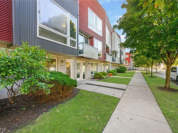 Where surf meets the turf… Cleveland style! Welcome to this chic urban townhome in the heart of it all. Experience the best of city living with Lake Erie, Edgewater Beach, and walking/ biking paths just a short stroll away. Perfectly situated in the vibrant Battery Park / Gordon Square district, this modern 2-bedroom, 2.5-bath home offers a walkable lifestyle with effortless commutes to downtown Cleveland for work, play, sports, and theater. The first floor features a versatile office or flex space and an attached garage. The main living level boasts an open-concept layout with a stylish living and dining area, modern kitchen, and convenient half bath. Kitchen has been fully renovated with white Shaker cabinets, beautiful quartzite counters, farm sink, West Elm lighting and LG ThinQ appliance suite. Upstairs, two spacious bedrooms each have their own full bath, offering comfort and privacy. Enjoy low-maintenance living surrounded by breweries, restaurants, and entertainment. A nearby dog yard (and dog beach) make it pet-friendly, too. Feeling adventurous? Hop on a scooter and be downtown in minutes for Guardians, Browns or Cavs games. Only 20 minutes to Cleveland Hopkins Airport—this is urban Cleveland living at its finest. Come visit today.