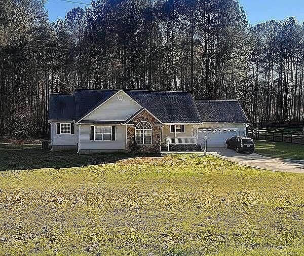 This lovely home in the Browns Place subdivision in Newnan is waiting for you! Located on 1.92 acres, you'll walk up to a ROCKING CHAIR FRONT PORCH you can hang out and relax at. Walking in you're greeted by BEAUTIFUL HARDWOOD FLOORING, open floor plan, vaulted ceilings and a STUNNING STONE FIREPLACE in the family room. Easy to clean granite countertops in the kitchen. The bedrooms are located to the left of the house with a HUGE OWNER'S SUITE having a spacious WALK-IN CLOSET, dual sinks in the nice sized bathroom with separate shower, and soaking tub. You'll love all the space on the WOODEN BACK DECK, perfect for entertaining and overlooking the private backyard with NO NEIGHBORS BEHIND YOU! There's not a lot on the market, come out and see this home today!