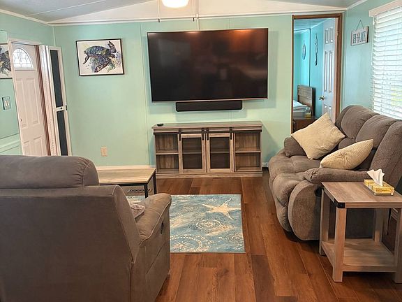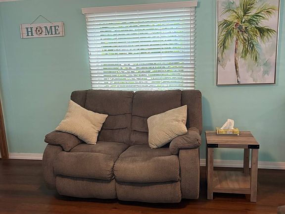 Almost everything in this stunning canal-front home has been updated, offering move-in-ready comfort with high-end updates throughout. Step into the spacious open-concept living, dining, and kitchen area, where updated paint and flooring create a fresh, welcoming atmosphere. The completely remodeled kitchen is a chef's dream, featuring hardwood cabinets, sleek Corian countertops, and stainless steel appliances that bring both style and functionality. Each end of the home offers a cozy bedroom, perfect for privacy and flexibility. Both bathrooms have been thoughtfully updated with walk-in showers, modern vanities, and new toilets-giving each bedroom its own private, spa-like retreat. A charming office nook leads to the expansive 11x18 Florida Room, a bright and airy space with new carpeting and AC. Whether you're working from home, entertaining guests, or just relaxing with a book, this space adds incredible versatility to the home. Step outside and you'll immediately notice the attention to detail continues. The exterior features vinyl siding, updated windows, a newer roof and carport. The resurfaced driveway and professionally landscaped yard with attractive curbscape enhance the home's overall curb appeal. Enjoy several fruit trees as well - avocado, banana, and more! Out back, a private wooden deck overlooks the peaceful canal, offering a perfect setting to enjoy morning coffee, evening sunsets, or a quiet moment with nature-just steps from your back door. As an added bonus, this home is being sold furnished, making your move effortless. Simply bring your suitcase and start enjoying the Florida lifestyle! Don't miss your chance to own this beautifully updated home - schedule a tour today!