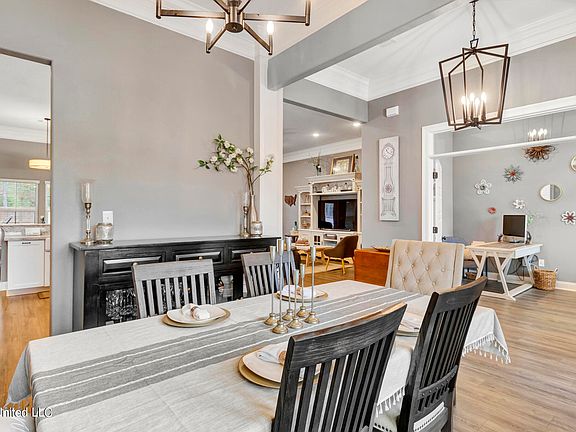 Located in the voted ''Nicest Place to Live in Mississippi'' by the Reader's Digest, this two year young home in Florence Gardens offer the perfect blend of classic design with modern living in mind. As you approach, you are greeted with an oversized courtyard-style garage and inviting front porch adorned with a gas lantern and 600lb Iron Entry Door that makes a statement! Entering the home, 10' high ceilings, expansive windows with transoms, and detailed crown molding sets the tone for this well designed home. The gourmet kitchen features beautiful stone countertops with soft-close cabinetry, and stainless steel appliances including this drawer microwave and WIFI connect double ovens, truly making it the heart of the home. Adding even more convenience is a vent hood to the exterior with natural gas cooktop and spice rack for easy storage. The primary bedroom, features a tray ceiling with led flush mount lighting and plenty of space to for your own relaxing retreat. But even better, leading into the ensuite is a bathroom designed with self care in mind! The deep soaker tub, dual vanities, and oversized shower with floor to ceiling tile, stone shower pan and dual showerheads creates a spa like feel.