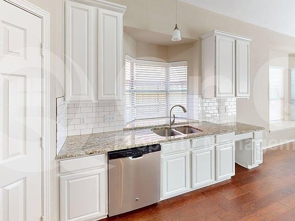 Welcome to this stunning 4-bedroom, 4-bathroom home with a den in the desirable Grayhawk community of Frisco. With 3,435 square feet of living space, this thoughtfully designed two-story home features soaring vaulted ceilings and wood flooring throughout all the right places. The spacious eat-in kitchen includes updated lighting and fixtures, an oversized center island with breakfast bar, and a breakfast nook, all opening into a large living room with a cozy fireplace. There's also a separate formal dining room and an additional family room for even more flexible living space. Downstairs, a generously sized primary suite complete with a highly upgraded full bathroom and dual walk-in closets. The flexible den makes an ideal home office or bonus room. Upstairs, each secondary bedroom is set up for optimal privacy, accompanied by a secondary flex space. Oversized backyard. The laundry room comes with a washer and dryer, and there's ample storage between the 2-car garage and separate storage shed. Community features include a lake, playgrounds, and scenic biking/walking trails. Conveniently located with easy access to US-380 and the Tollway.