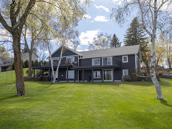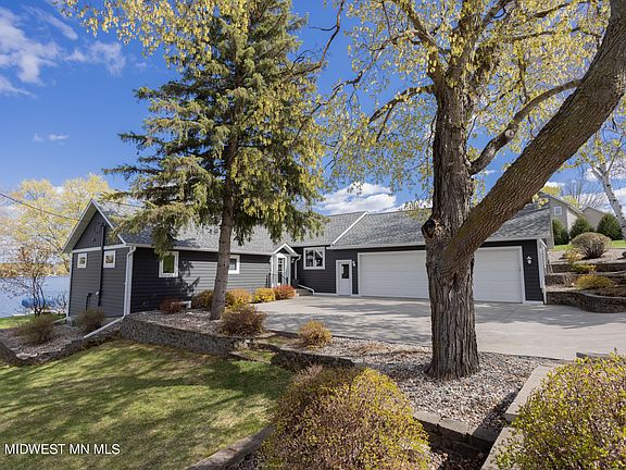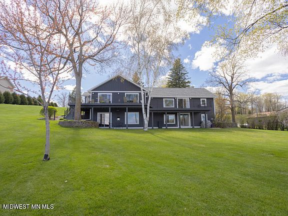 Gorgeous 4 bedroom, 3 bath home with steel siding, new roof and heated 3-stall garage on a perfectly manicured level lot with 240ft of absolutely stunning lakeshore (WOW!) on Lake Maud the ideal spot for the perfect commute to F/M Area. This home features a beautiful addition in the 90's with continual updates since then showcasing today's modern style throughout the home. This meticulously cared for property features a beautiful eat-in kitchen with custom cabinets and granite & quartz countertops, gleaming hardwood floors, gorgeous main floor primary ensuite overlooking the lake with walkin closet & private bath. Inviting lower level walkout family room with gas fireplace and a second kitchen with granite counters ideal for entertaining, plus a large deck with beautiful views of the lake.