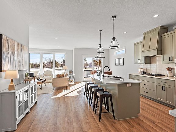 Incredible golf course views! This Amelia floorplan is ready for you to move in now! Located in Lakes Area Golf Villas, a detached villa community in charming Lindstrom. Your new construction home includes 3 beds, 3 baths & 3 car garage. With windows on all 4 sides, the main level floods with natural light. Elegant owner’s suite w/dual vanity on main plus primary 1/2 bath for guests, bright pocket office, mudroom, & laundry! Your gorgeous kitchen is complete w/custom cabinets, walk-in pantry & overlooks dining area & great room w/gas fireplace. Enjoy being surrounded by natural light & south views of the golf course looking over holes 1, 7, & 17 from your many windows & deck! LL walkout has 2 beds, full bath, spacious family room w/sliders to patio & more stunning views. Ample storage space in LL w/bonus flex room! Full landscape pkg completed. Chisago Lakes area is known for its abundance of lakes, trails, excellent schools, & charming downtown Lindstrom. Come see your new home today