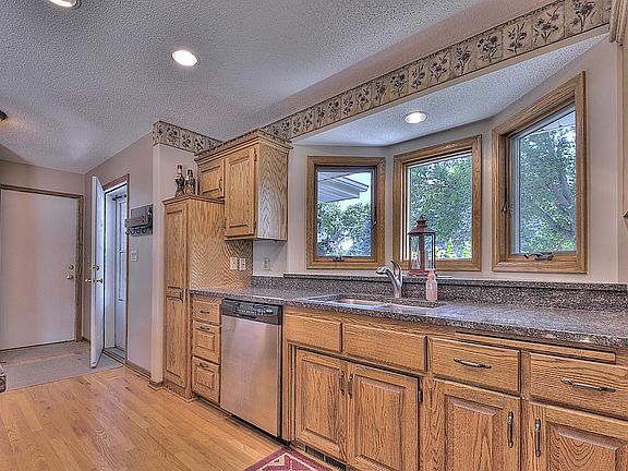 Nicely appointment 4BD, 2BA home with an oversized kitchen and super-open and vaulted layout! Granite counters, stainless appliances, Andersen windows, updated furnace and A/C, and three bedrooms clustered upstairs. Enjoy the maintenance-free deck, in-ground sprinklers, huge fenced backyard, side parking pad, patio slab and electrical hookup for future hot tub, and tons of storage (in the utility room and full crawlspace under the entire kitchen area). Lots to love here -- watch the Virtual Tour!
